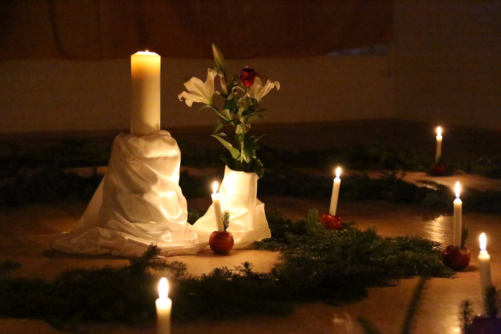 Spiráljárás adventkor Pénteken a padlón fenyőágakból formált óriási [...]